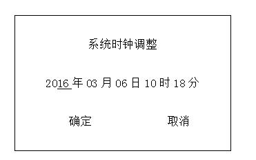SF6密度继电器校验仪系统压力值修正 1. 在主界面下,“系统压力值修正”功能为仪器出厂调试用。2. 在主界面下,将光标移至“系统压力值修正”,长按旋转鼠标进入修改界面。 系统时钟调整1. 在主界面下,将光标移至“系统时钟调整”,按下旋转鼠标,可以调整系统时钟。2. 系统时钟校正的界面如下图所示: 旋转鼠标移动光标在待修改的年、月、日、时、分的数值下;按下鼠标后旋转鼠标进行设置。修改完后,按“确定”键即完成修改并返回到主界面。 推荐仪器:SF6密度继电器校验仪 瓦斯继电器校验仪