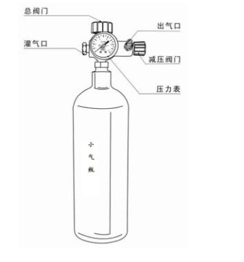 测试时,也可以将小气瓶“灌气口”直接连接气源不拆卸直接给仪器供气。